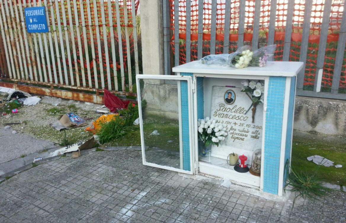 Un episodio che ha dolorosamente segnato la famiglia che ha iniziato dapprima una battaglia per la messa in sicurezza della zona, poi sollevato più volte lo stato di degrado e lo sversamento abusivo dei rifiuti in quell’area divenuta una discarica a cielo aperto, oggi l’ennesimo scempio: la lapide commemorativa per il piccolo Francesco è lì, tra i rifiuti, come mostrano le immagini, un colpo al cuore per i cari del ragazzo.