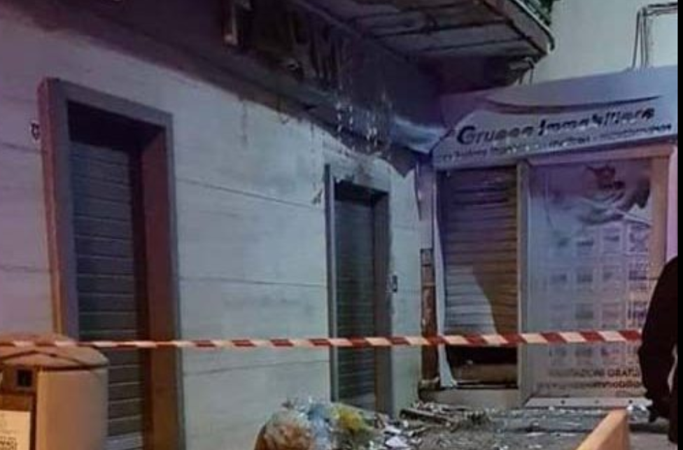 Una potente bomba carta è stata fata esplodere nella notte a via Gramsci a San Sebastiano al Vesuvio. L’ordigno ha danneggiato ben due negozi, ha mandato in frantumi la vetrata della farmacia Finelli e ha divelto la serranda dell’agenzia immobiliare adiacente, probabilmente il vero obiettivo.