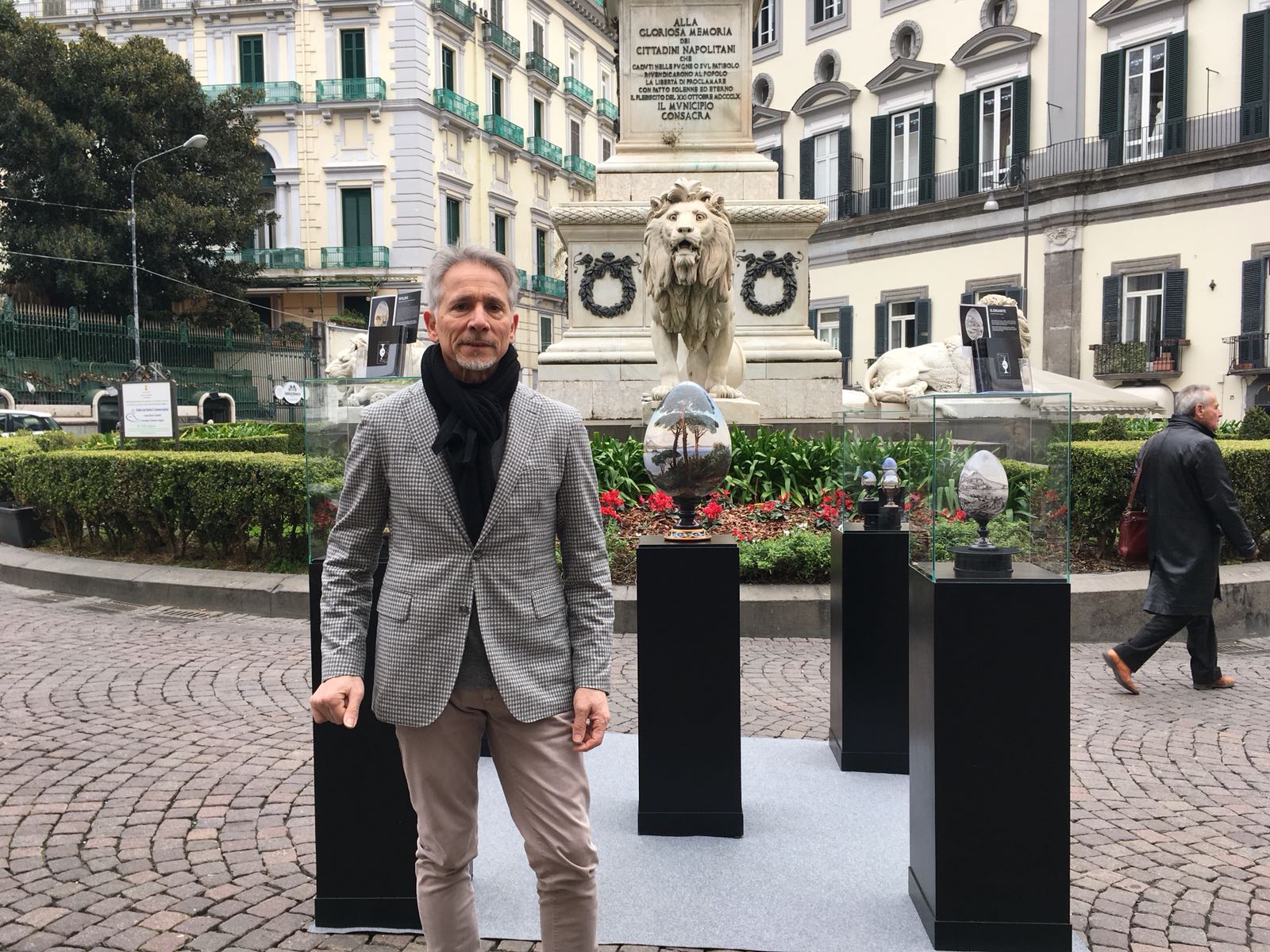 Durante la giornata, dalle ore 8 alle ore 20 in piazza dei Martiri, sarà esposta la collezione dell’artigiano Franco De Stefano. Il maestro, omaggiando la sua città, cercherà un confronto diretto con i napoletani interrogandosi su chi è in grado di riportare Napoli agli antichi splendori. Il soggetto che riceverà più voti sarà omaggiato con la sua opera Napul’egg.