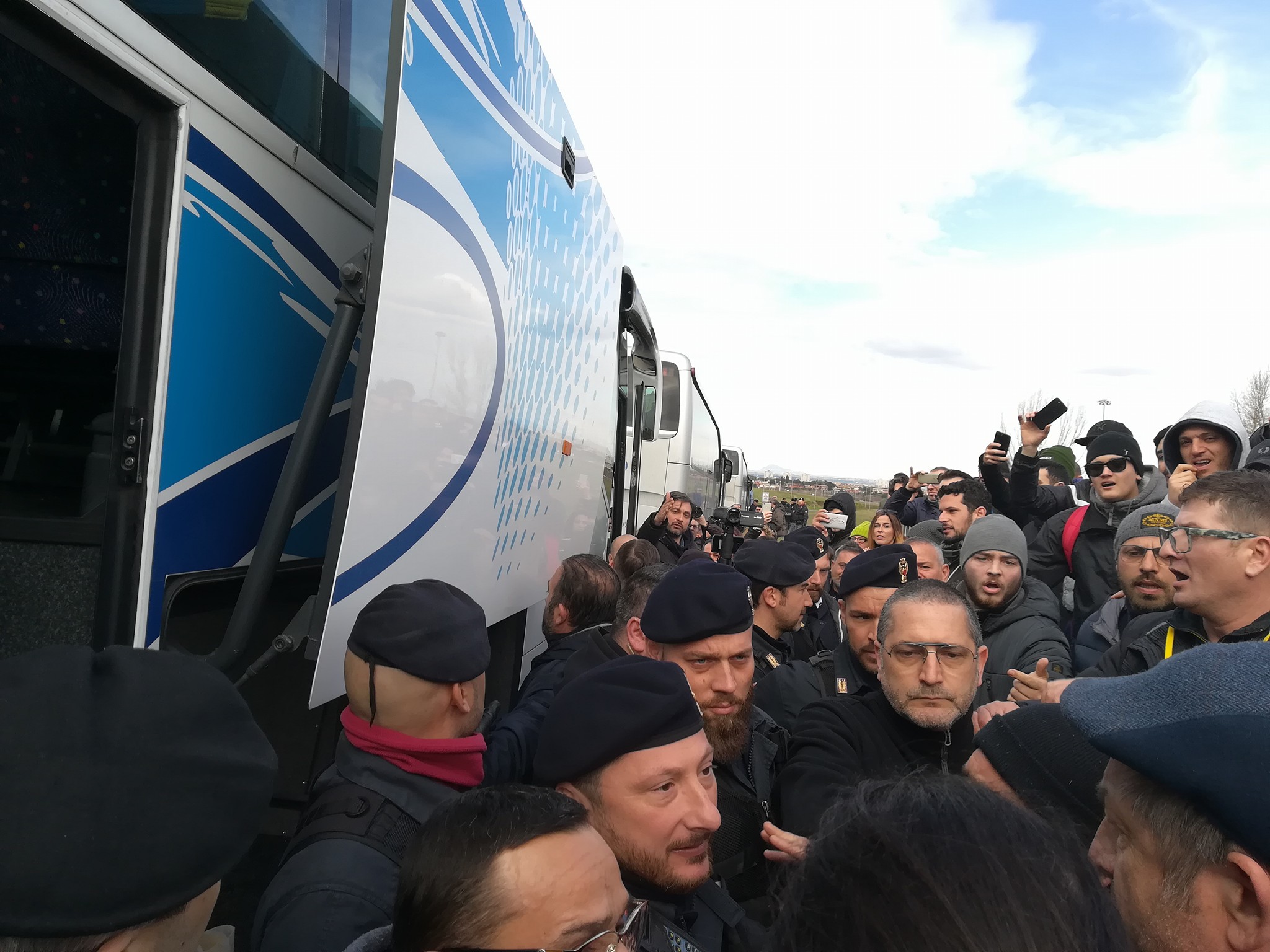 Sui mezzi fermati c’erano, oltre a consiglieri e presidenti di Municipalità, anche il vice sindaco Raffaele del Giudice e l’assessore alle Politiche Giovanili Alessandra Clemente. I bus sono stati fermati, secondo quanto si apprende, all’uscita di Roma Sud. “Siamo stati fermati tre, volte – dice Poggiani all’Ansa – abbiamo subito anche perquisizioni personali, non risparmiate neanche alla moglie del sindaco, Maria Teresa Dolce, che stava viaggiando con noi”.