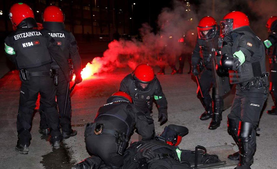 La Polizia Autonoma Basca si è trovata in mezzo al fuoco incrociato dei bengala e dei razzi lanciati dai due gruppi rivali e in questi concitati momenti, secondo una prima ricostruzione, l’agente avrebbe accusato un doppio arresto cardiaco. Il bollettino finale recita inoltre anche quattro feriti e cinque persone arrestate.
