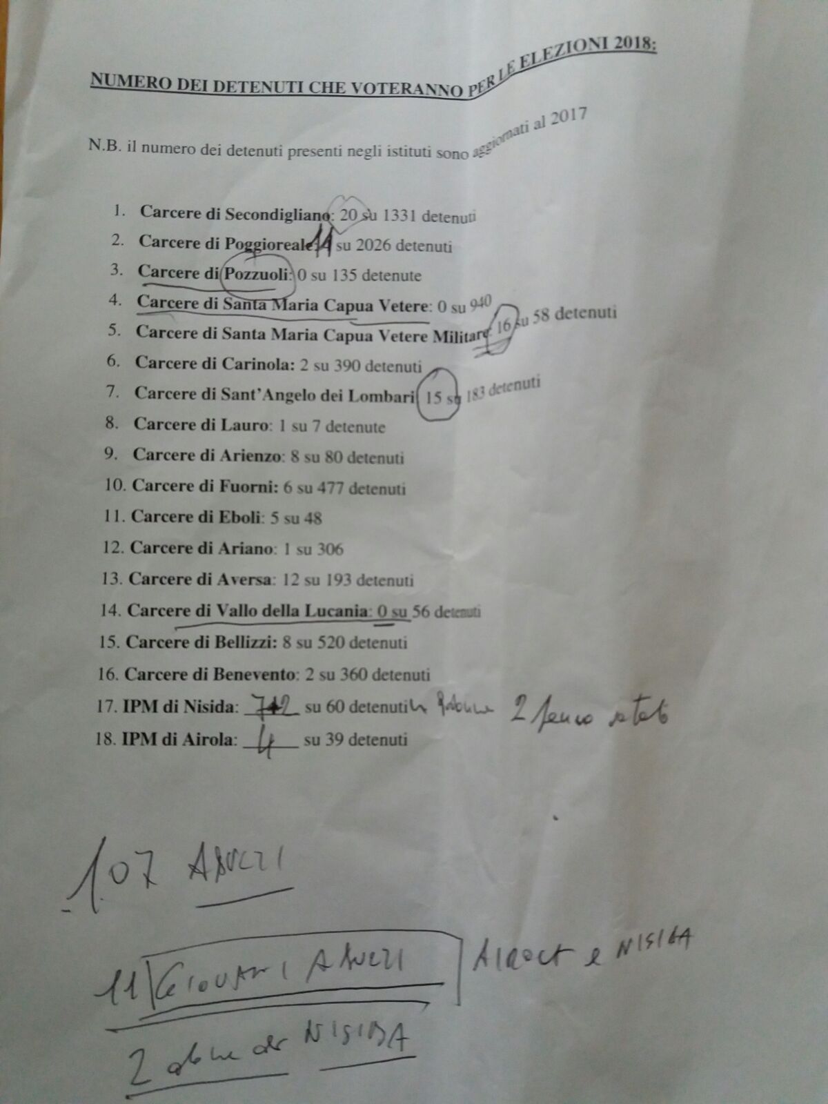 Il Garante della regione Campania Samuele Ciambriello dichiara: “che oggi i detenuti che hanno usufruito della Legge del 23 aprile 1976: la quale permette l’esercizio del diritto di voto da parte degli imputati di qualsiasi reato mediante la creazione di un’apposita sezione elettorale che all’interno dell’Istituto raccoglierà il voto dei detenuti aventi diritto e che abbiano manifestato al sindaco la “volontà di esprimere il voto nel luogo di detenzione”, sono stati in totale 120 negli Istituti Penitenziari Campani, compresi Nisida e Airola“.
