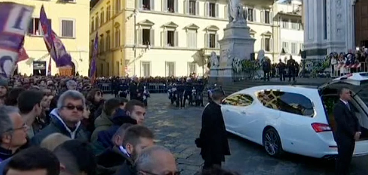 Si stanno tenendo questa mattina a Firenze presso la Basilica di Santa Croce i funerali di Davide Astori, il capitano della Fiorentina di 31 anni deceduto sabato notte a causa di un arresto cardiaco. La sua morte ha sconvolto l’intero mondo del calcio e non solo. In migliaia hanno accolto l’arrivo del feretro nella piazza fiorentina, cordone di bambini che generalmente accompagnano i calciatori in campo durante le partite fuori all’ingresso della chiesa.