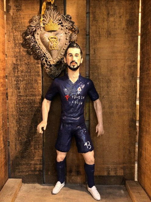 Il maestro del Presepe napoletano, Marco Ferrigno, ha voluto rendere omaggio con una sua speciale creazione a Davide Astori, capitano della Fiorentina scomparso a soli 31 anni. La statuetta di terracotta è stata esposta nella vetrina nel cuore del centro storico di Napoli per ricordarlo in uno degli aspetti della sua vita più significativi, mentre indossa la maglia viola numero 13.