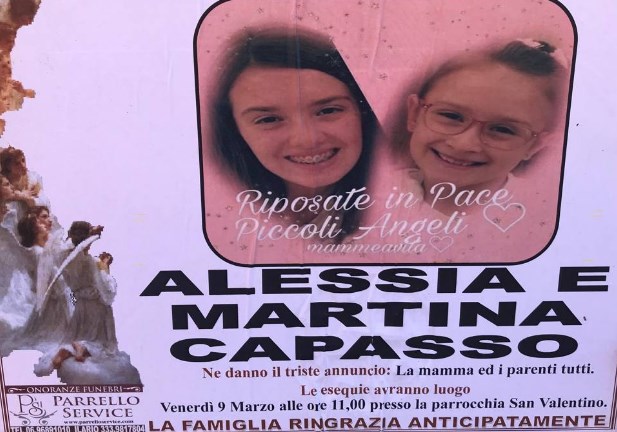 Una lunga omelia quella di don Livio Fabiani il parroco della chiesa Collina dei Pini, a Cisterna di Latina, dove in mattinata si sono celebrati i funerali di Alessia e Martina, le piccole di 7 e 13 anni uccise a colpi d’arma da fuoco dal padre Luigi Capasso (poi morto suicida) lo scorso 28 febbraio. La madre, Antonietta Gargiulo, ferita gravemente dal marito, si è risvegliata nelle scorse ore e ha appreso della tragica scomparsa delle figlie.