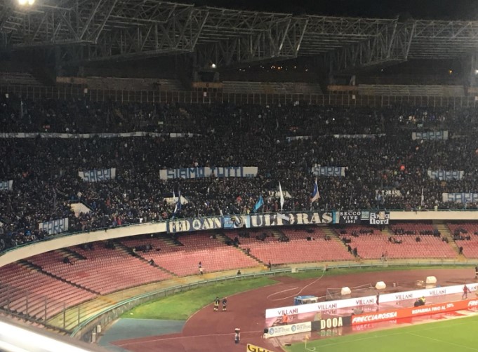 La curva A fa una dedica d’amore alla propria squadra costretta per competere con la capolista Juventus; la curva B indirizza il suo interesse alla polemica mossa contro l‘allenatore Maurizio Sarri, per le dichiarazioni fatte alla giornalista.