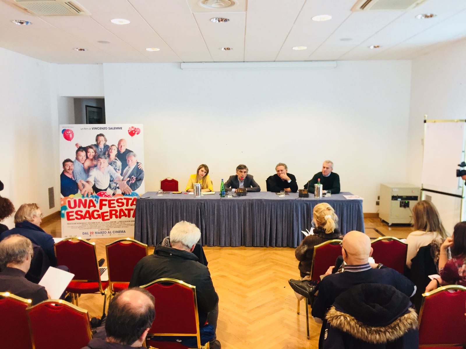Si è tenuta stamattina a Napoli la conferenza stampa riguardante l’ultimo film di Vincenzo Salemme, storica voce napoletana della commedia teatrale e cinematografica, che nei panni di attore e di regista, traspone sul grande schermo Una festa esagerata, omonima commedia portata in scena prima a teatro, per l’appunto, e poi al cinema. “Molti mi avevano suggerito di farne un film” cosi Salemme introduce l’argomento “e per farlo mi sono avvalso della sceneggiatura scritta in collaborazione con Enrico Vanzina con il quale abbiamo una lunga esperienza di lavoro. Il film – aggiunge – è stato girato tutto a Napoli, nella specie a via Petrarca“.