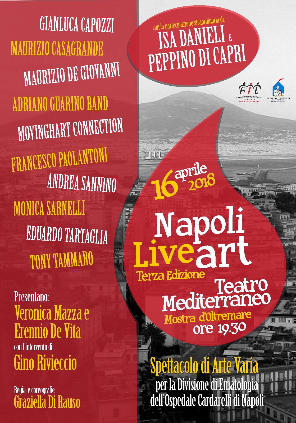A tal fine, sono state interpellate alcune tra le figure più prestigiose della tradizione culturale napoletana, intesa come musica, teatro, e letteratura. Da tutte si è avuta una adesione entusiastica, a dimostrazione delle straordinarie qualità umane oltre che artistiche dei protagonisti di questa serata, che vuole rappresentare un ideale abbraccio tra arte e medicina. Da oltre 30 anni l’Ematologia del Cardarelli è impegnata ad offrire assistenza ai pazienti non solo campani e si avvale di una stretta collaborazione con l’A.I.L., che negli ultimi tempi ha notevolmente migliorato gli aspetti dell’accoglienza e del confort con notevole soddisfazione di tutta l’utenza.