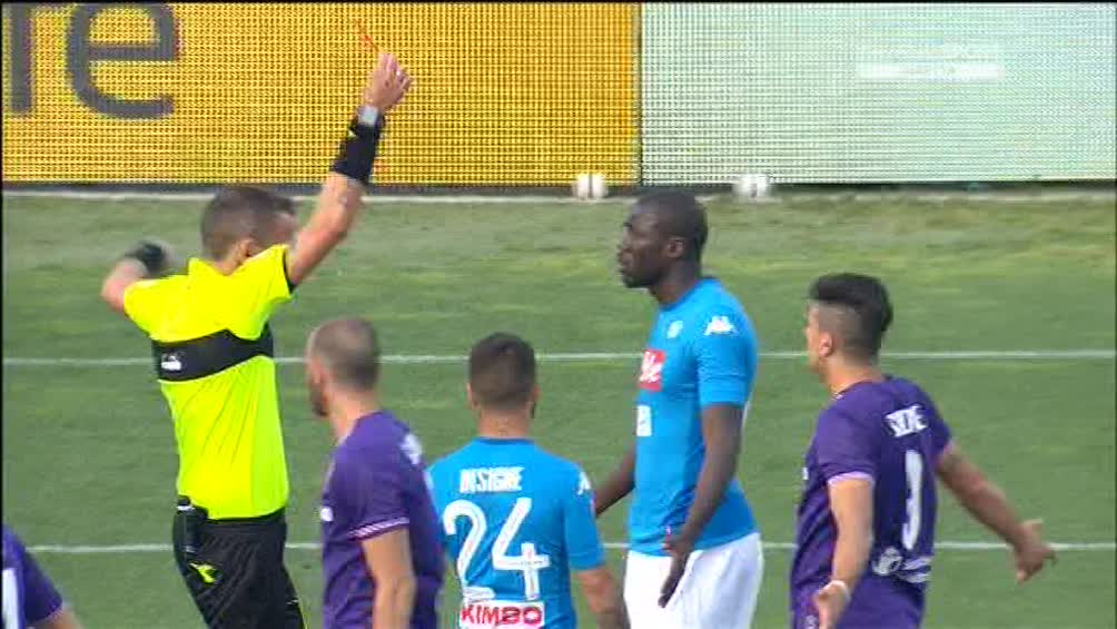 Protagonista, questa volta in negativo, Koulibaly che dopo sette minuti rimedia un cartellino rosso per un fallo da ultimo uomo sull’argentino Simeone. La decisione di Mazzoleni, a termini di regolamento, è giusta: il difensore franco-senegalese entra in ritardo sull’attaccante viola, bravo a prendergli il tempo.