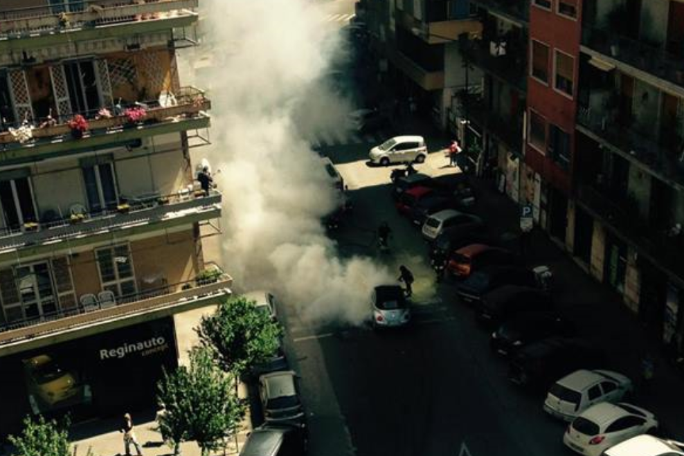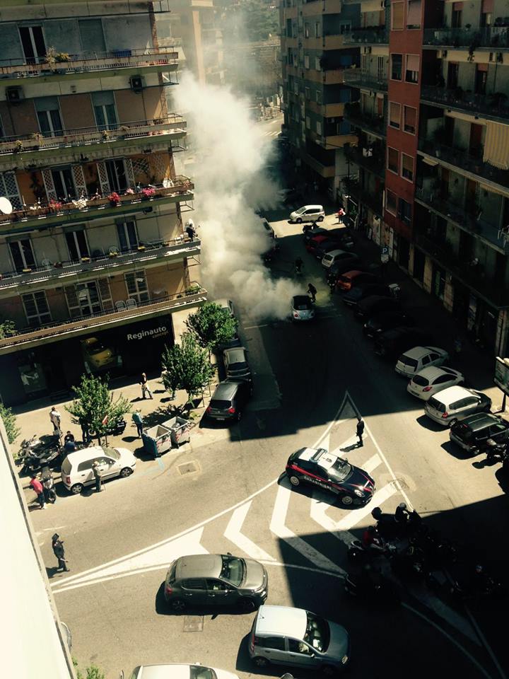 Sul posto sono giunte le forze dell’ordine, per fortuna non c’è stato nessun ferito e nessun danno è stato riportato. Il fumo però ha raggiunto anche i piani alti, da cui è stata scattata questa foto. Il traffico che ha subito una paralisi, trattandosi di una zona che dirama lo stesso verso la tangenziale di Napoli, è stato prontamente ripristinato dall’arrivo della polizia municipale sul posto.