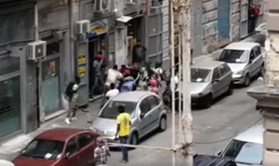 La situazione in questi giorni è diventata molto tesa in alcune zone di Napoli, frequenti risse tra immigrati hanno aizzato gli animi creando un caos che sta degenerando e che preoccupa molto la popolazione residente. L’ultima lite è scoppiata questa mattina, nei pressi di un negozio, coinvolgendo numerose persone presenti all’esterno dello stesso.