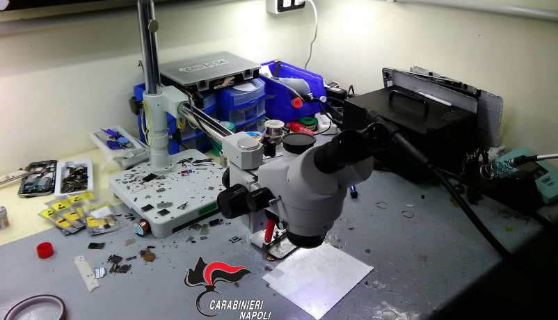 La perquisizione subito eseguita in quello che in apparenza era un esercizio commerciale di riparazioni di materiale informatico, aveva svelato invece svelato l’esistenza di un laboratorio clandestino adibito alla “rigenerazione” di dispositivi elettronici e di attrezzature varie di provenienza illecita.