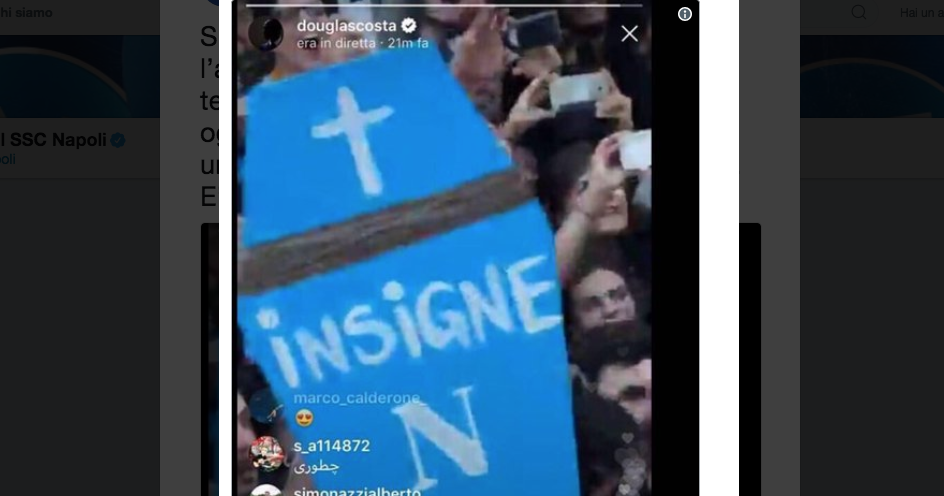 Dopo le dichiarazioni di Massimiliano Allegri, i cori offensivi dei tifosi della Juventus nei confronti dei napoletani e la “grazia” a Gianluigi Buffon nel giorno del suo addio alla maglietta bianconera (fallo da rigore netto su Cerci con conseguente espulsione), è balzato all’onore delle cronache sportive il tweet lanciato da Douglas Costa.