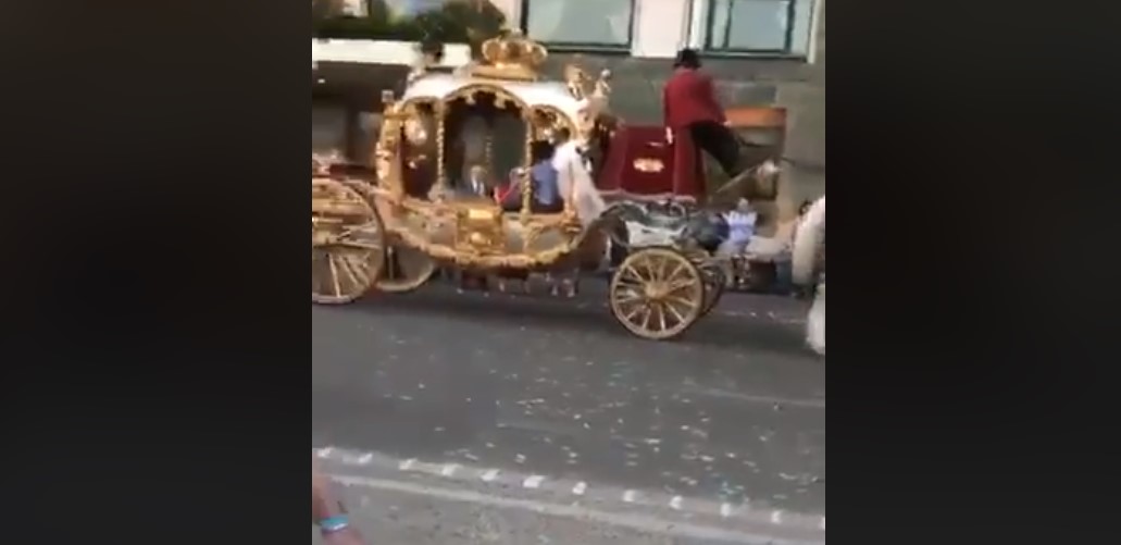 “Comunione reale” sul lungomare di Napoli. Dopo il Royal Wedding in Gran Bretagna, anche a Napoli c’è chi sceglie di festeggiare in grande stile. E’ quanto accaduto sul lungomare per una comunione, in cui la festeggiata ha sfilato per strada a bordo di una carrozza dorata con un sottofondo musicale suonato da una banda.