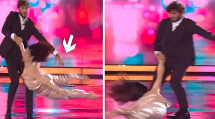 De Martino non è riuscito ad afferrare al volo la compagna che è così scivolat per terra perdendo il microfono e causando la rottura del vestito. Nessun danno serio, però, per i due ballerini che hanno ironizzato: “Noi l’abbiamo fatto per scimmiottare gli altri” e così al via della musica i due si lanciano in un secondo, perfetto, mambo italiano.