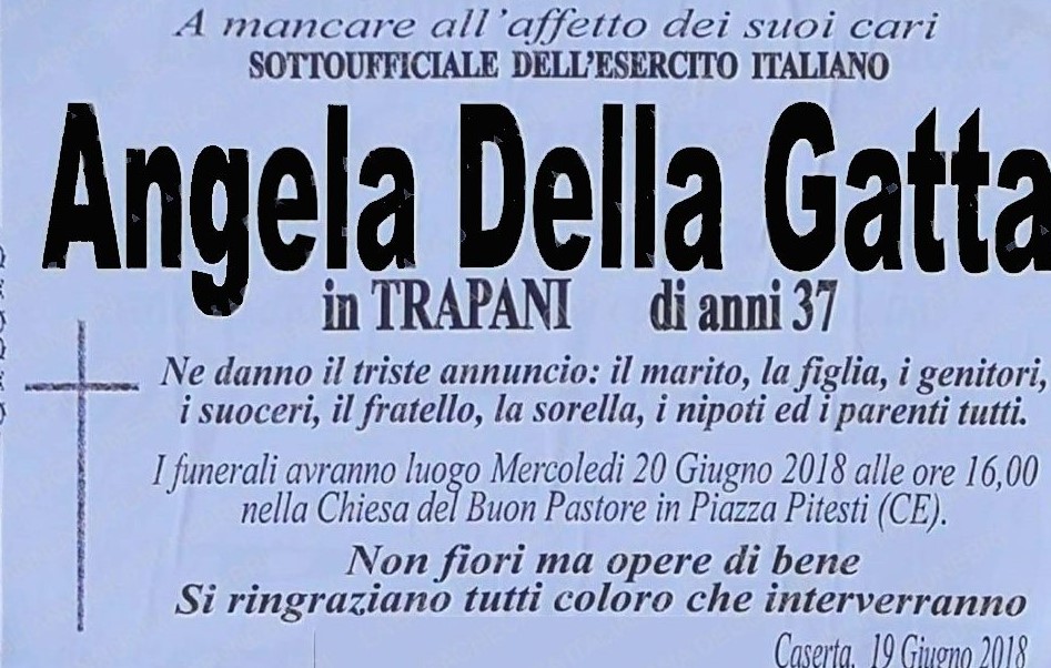 I funerali si terranno questo pomeriggio alle ore 16.00 presso la Chiesa del Buon Pastore in piazza Pitesti a Caserta. Prevista la partecipazione di molte persone e di rappresentati dell’Esercito italiano che lavoravano con Angela. In tanti in queste ore si stanno stringendo al dolore della famiglia per una perdita così grave. Molte le parole di cordoglio per questa prematura scomparsa.