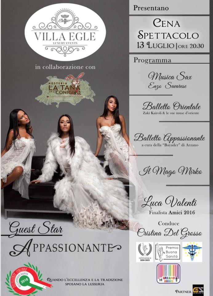 Villa Egle Luxury (Via Indipendenza 2, Casoria) & Hosteria La Tana del Coniglio dello Chef Raffaele Di Scala presentano una cena/spettacolo con finalità benefiche che avrà luogo venerdì 13 luglio alle ore 20.30 solo su prenotazione. Parte del ricavato della serata sarà devoluto a due associazioni benefiche da tempo impegnate sul territorio: ‘Arzano 80022’ attenta alle esigenze dei più piccoli con numerosi progetti attivi e molti altri in programma per il periodo estivo e ‘Buona sanità’ impegnata in attività benefiche e di volontariato sul territorio.