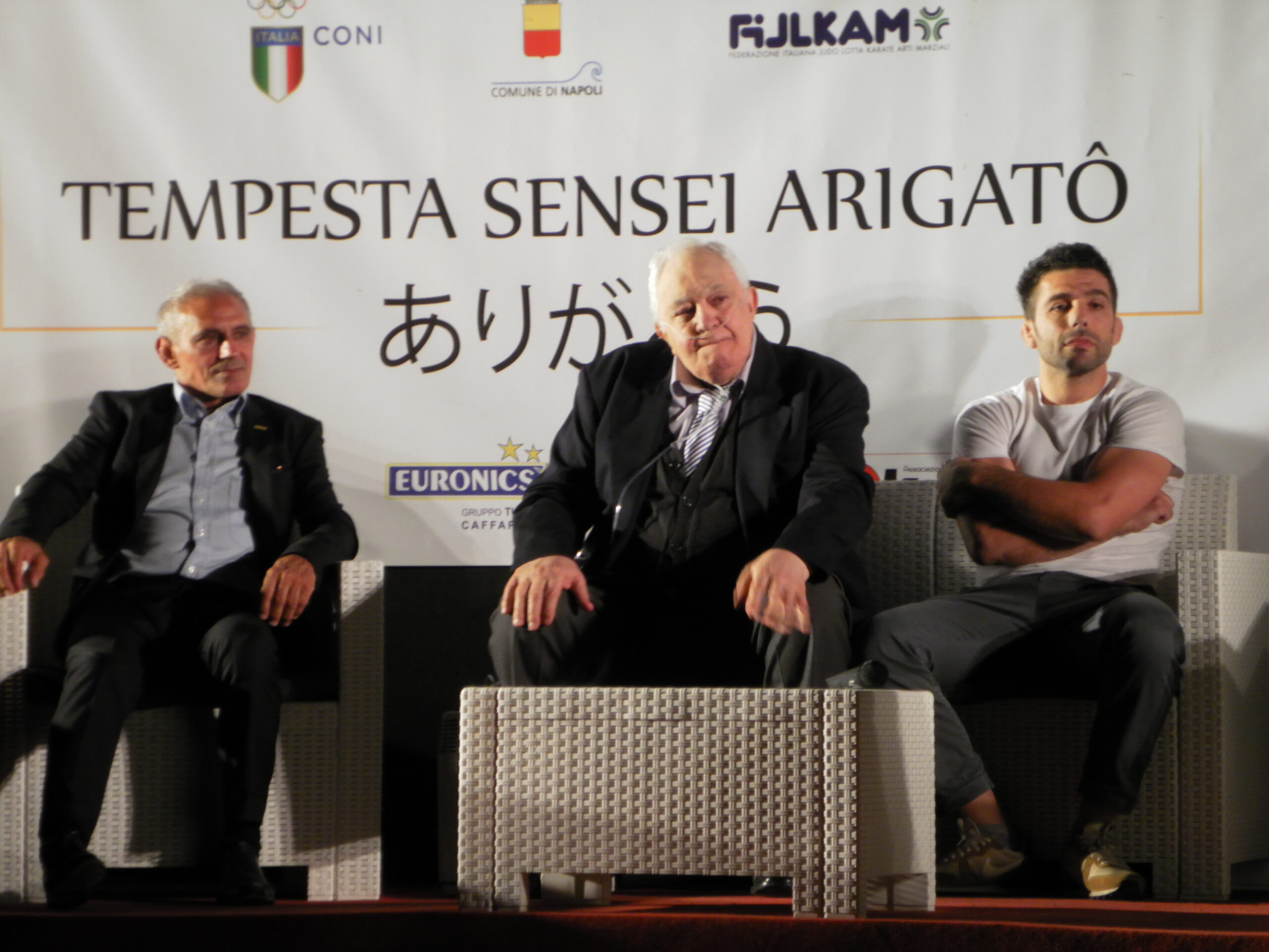 Premiati per la passione dimostrata e il judo praticato il dottore Ciro Mauro, Direttore della Struttura Complessa di Cardiologia all’Ospedale Cardarelli, l’oncologo Roberto Fiorentino del Cardarelli e il fisioterapista Marco Pisani. Presenti il Procuratore Aggiunto della Direzione Distrettuale Antimafia di Napoli Giuseppe Borrelli, il Procuratore della Repubblica presso il Tribunale di Benevento, Aldo Policastro, il maestro di strada ed ex sottosegretario alla Pubblica Istruzione, Marco Rossi Doria, il maestro Bruno Carmeni con Tempesta ai Giochi olimpici nel Sol Levante nel 1964, Luigi Nasti, vicepresidente della Fijlkam, l’assessore allo sport del Comune di Napoli, Ciro Borriello, il Campione del Mondo Cadetti Giovanni Esposito, Domenico Di Guida vice campione del mondo juniores, Campione d’Europa juniores e più volte campione italiano assoluto, Giovanni Di Cristo, numerose volte campione italiano assoluto e campione d’Europa Under 23, il maestro Alfredo Apicella, delegato CONI in Brasile. Ben oltre 300 i presenti all’evento condotto da Gianluca Punzo della Società Italiana Storia dello Sport con Giuseppe Tribuzio, docente dell’Università degli Studi di Bari “Aldo Moro”. E chissà che il judo non diventi una nuova materia tra i banchi di scuola. Questa la vera sfida da giocare, come ha auspicato il dirigente scolastico Mena Nocera. Battute finali: si alza, si inchina davanti al folto pubblico ringrazia. Tempesta Sensei Arigato.