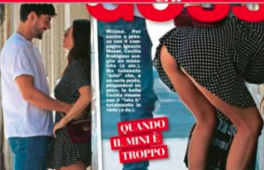 Così scrive il settimanale “Chi” nella sezione “Chicche di gossip”: “Milano. Per uscire a pranzo con il compagno Ignazio Moser, Cecilia Rodriguez sceglie un mini abito. Talmente mini che, a un certo punto, piegandosi un poco, la bella Cecilia rimane con il lato B totalmente in vista”.
