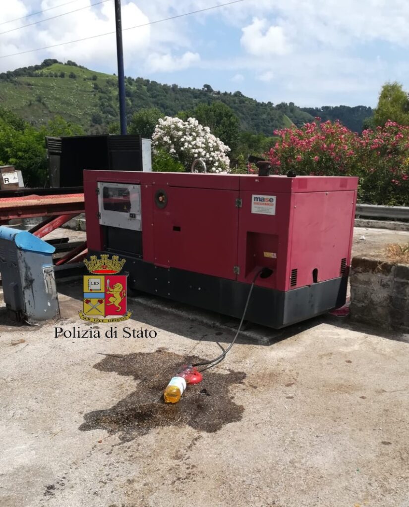 Il vigilante, un 56enne di Secondigliano e con precedenti per reati contro il patrimonio, aveva pensato bene di rubare del carburante di cui era rifornito il gruppo elettrogeno lasciatogli in custodia. I poliziotti, nel corso dei servizi di pattugliamento, hanno sorpreso l’uomo mentre era intento, attraverso un tubo in gomma, a trasferire il carburante dal motore del gruppo elettrogeno ad una bottiglia in pet da 2litri.