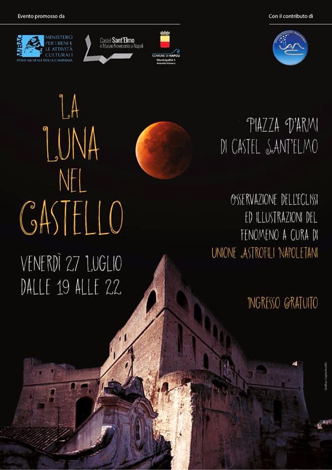 GLI APPUNTAMENTI A NAPOLI – Per osservare bene la Luna piena sarà sufficiente un binocolo. In Italia sono decine gli appuntamenti, quasi tutti gratuiti, con la Luna rossa. A Napoli, a partire dalle 20 all’Osservatorio di Capodimonte, eclissi con aperitivo e conferenze di Roberta Colalillo, Istituto nazionale di fisica nucleare e Edgardo Filippone, Università Federico II.