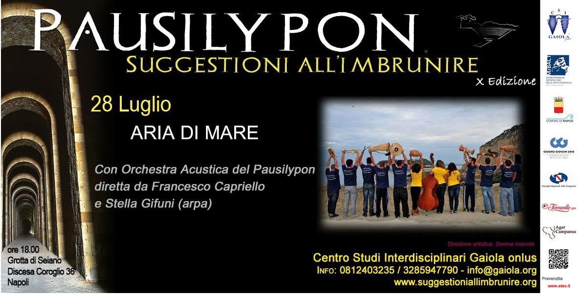 Per la settima ed ultima serata di “Pausilypon: Suggestioni all’Imbrunire”, la Rassegna stabile del Parco archeologico del Pausilypon, curata dal Centro Studi Interdisciplinari Gaiola onlus, con la direzione artistica di Serena Improta, d’intesa con la Soprintendenza Archeologia, Belle Arti e Paesaggio per il Comune di Napoli, arriva “Aria di mare” con l’Orchestra Acustica del Pausilypon diretta da Francesco Capriello e la partecipazione di Stella Gifuni all’arpa.