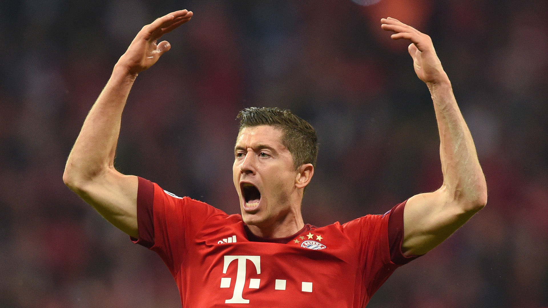 Bayern Munich's Polish striker Robert Lewandowski reacts during the UEFA Champions League semi-final, second-leg football match between FC Bayern Munich and Atletico Madrid in Munich, southern Germany, on May 3, 2016. / AFP / CHRISTOF STACHE (Photo credit should read CHRISTOF STACHE/AFP/Getty Images)