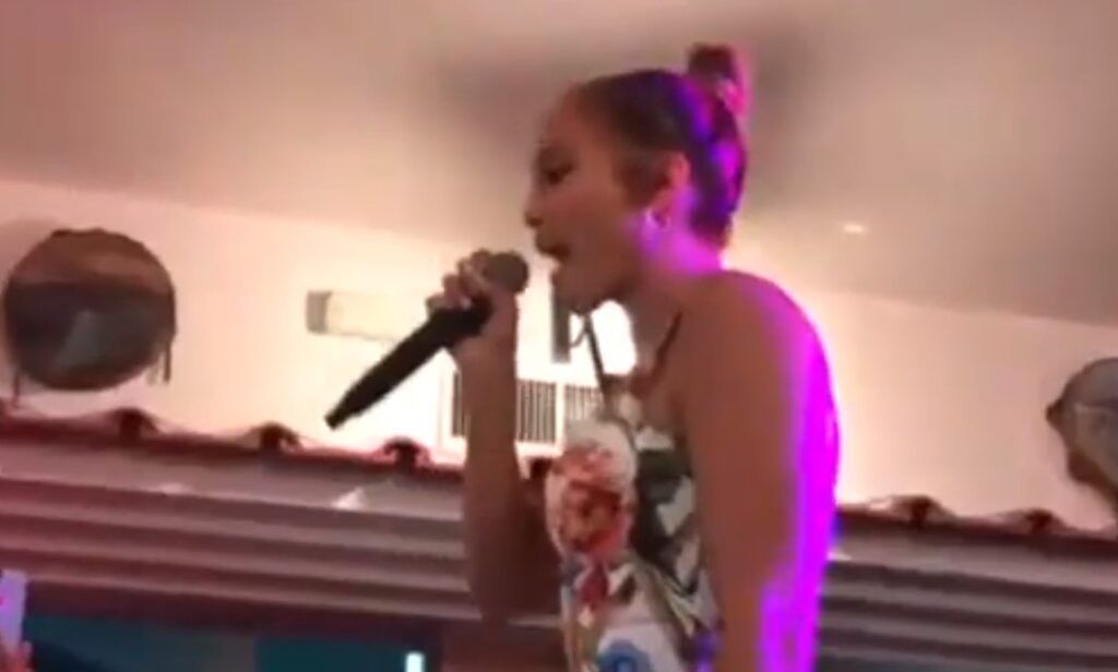 Prima una passeggiata nella storica piazzetta, poi un po’ di shopping e infine cena a base di pizza, scampi e tanti assaggi di prodotti tipici. Durante la serata in un locale del posto,l’Anema e Core, la star non ha esitato a salire sul palco per cantare uno dei suoi cavalli di battaglia, “Let’s Get Loud”.
