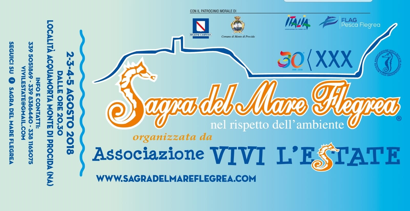 Si è conclusa domenica 5 agosto la 30esima edizione della Sagra del Mare Flegrea di Monte di Procida. Il bilancio delle 4 serate è più che positivo: 10 mila partecipanti in totale e in particolar modo la serata conclusiva di domenica ha registrato un picco di affluenza di persone provenienti non solo da Bacoli e dintorni ma da tutta la Campania. Grande successo per l’esibizione di James Senese e Napoli Centrale di venerdì sera e quella degli Skanderground, di sabato, che ha coinvolto il pubblico. Grande successo come di consueto anche per lo spettacolo dei fuochi pirotecnici, che ogni anno chiama a raccolta un folto gruppo di persone che si recano appositamente ad Acquamorta per l’occasione. L’obiettivo di portare turismo nella zona flegrea e dare un’immagine positiva della zona, grazie alla musica, al buon cibo e alla bellezza della location anche quest’anno è stato centrato appieno.