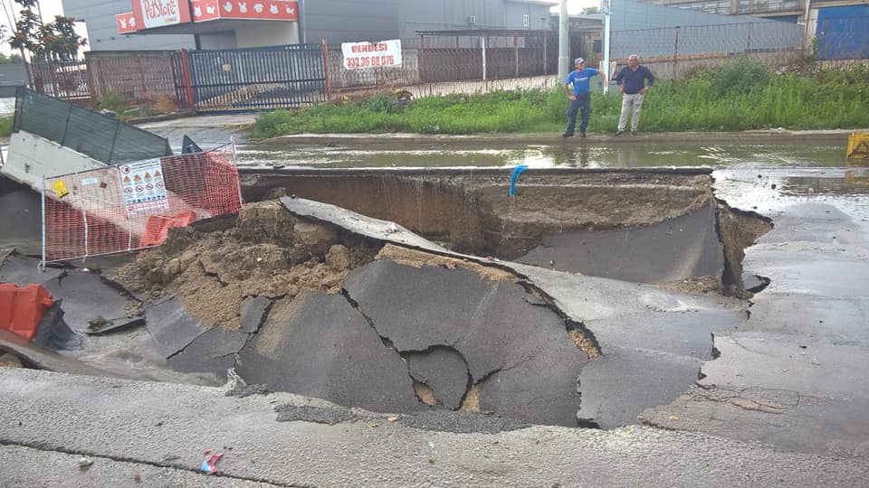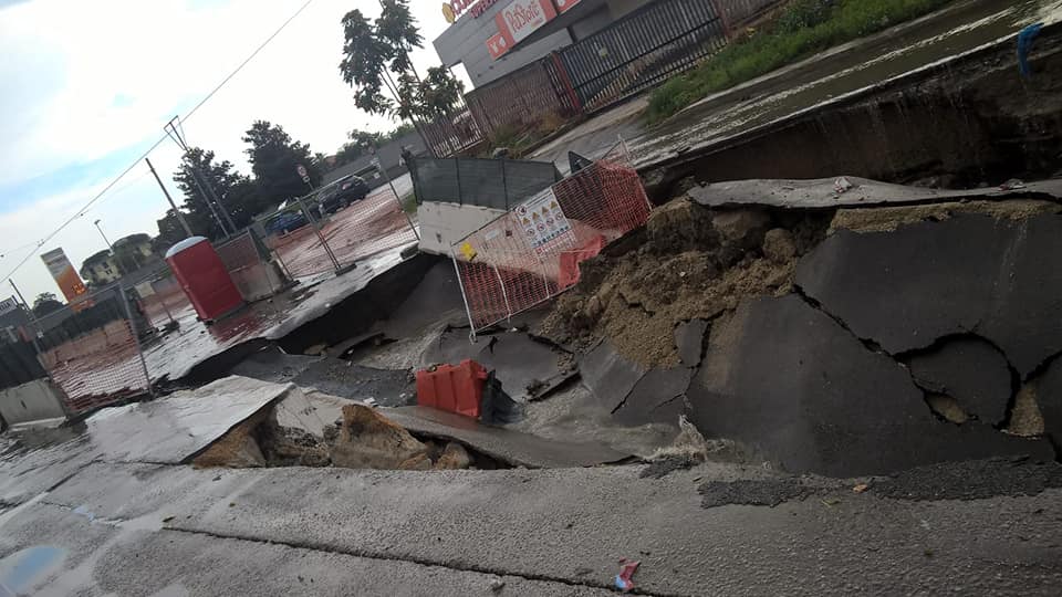 Bomba d’acqua devastante, Napoli e provincia in ginocchio. Strada collassa a Sant’Antimo