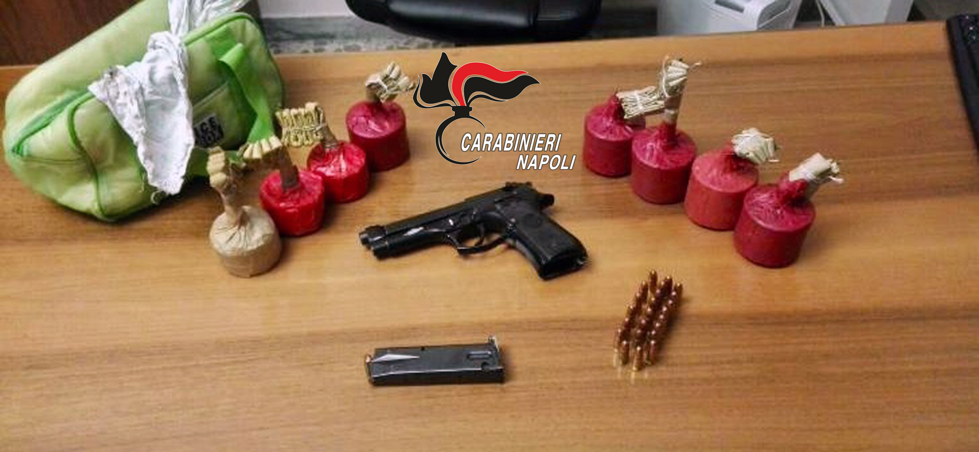 I militari hanno perquisito il 59enne e lo hanno trovato in possesso di un beauty-case contenente una pistola Beretta rubata con matricola abrasa e carica, una scatolina con 23 cartucce calibro 9 e 8 ordigni artigianali.