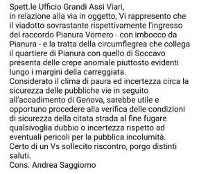 “Il viadotto presenta delle crepe anomale piuttosto evidenti”. Dopo questa pec inviata all’ufficio Grandi Assi Viari del comune di Napoli dal consigliere della IX Municipalità Pianura-Soccavo Andrea Saggiomo, il tratto di via Cinthia che da Pianura porta a Fuorigrotta è stato chiuso al traffico per accertamenti a causa di un sospetto avvallamento.