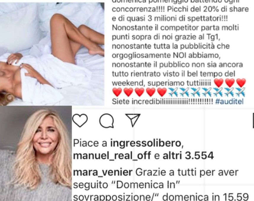 Dopo i risultati dell’Auditel la conduttrice di Rai Uno ha scritto: “Grazie a tutti per aver seguito “Domenica In” sovrapposizione/“ domenica in 15.59 domenica live 15.76 complimenti al mio competitor “. Subito il giornalista Alberto Dandolo ha ripreso la notizia mettendo in evidenza l’atteggiamento diverso della D’Urso che ha scritto: “Ieri Domenica Live è stato il programma più visto della domenica pomeriggio battendo ogni concorrenza!!!! Picchi del 20% di share e di quasi 3 milioni di spettatori!!! Nonostante il competitor parta molti punti sopra di noi grazie al Tg1, nonostante tutta la pubblicità che orgogliosamente NOI abbiamo, nonostante il pubblico non sia ancora tutto rientrato visto il bel tempo del weekend, superiamo tuttiiiiiii. Siete incredibiliiiiiiiiiiiiii!!!!!!!!!!!”.