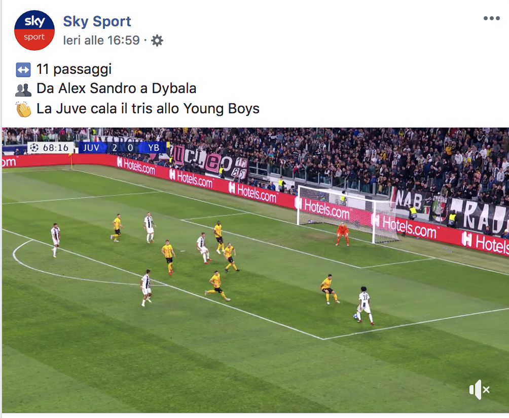 La Juventus mette 11 passaggi di fila contro i modesti svizzeri dello Young Boys e Sky Sport, televisione sempre più schierata con la Torino bianconera, ne celebra le “gesta”. Si perché sui canali social dell’emittente satellitare è comparsa una curiosa inserzione sponsorizzata.