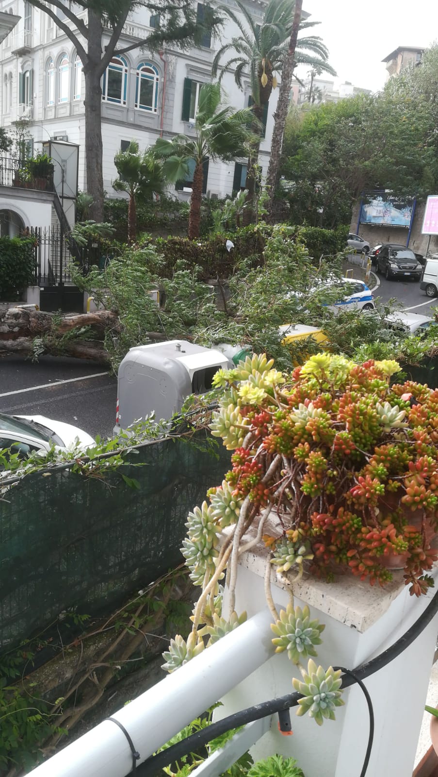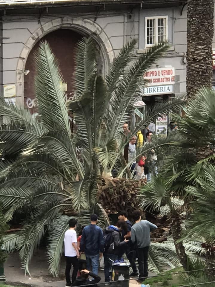 Paura anche in piazza Dante a Napoli dove poco dopo le 13 è crollata una palma. “Fortunatamente non ci sono persone coinvolte nella caduta dell’albero” commenta amareggiato Roberto Marino, residente nella zona.