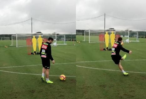 Mentre prova le punizioni, un assistente di Ancelotti gli chiede probabilmente la tecnica che utilizza e il belga replica: “Dopo ti spiego…”.