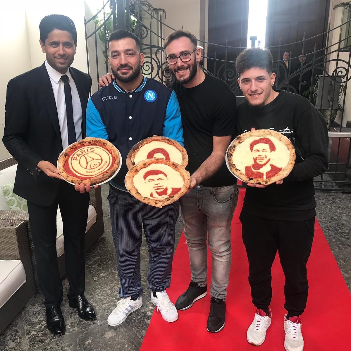 Una delle creazioni del maestro pizzaiolo Errico Porzio ritrae il logo della squadra parigina, le altre tre pizze sono con i volti di Edinson Cavani, Kylian Mbappè e l’ultima con il volto dello stesso presidente del PSG.