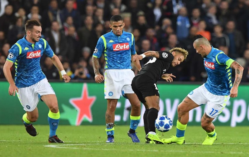 Il Napoli inizia attaccando, mettendola sul piano del gioco e della corsa, ricercando spesso le vie esterne, complice un San Paolo strapieno. La qualità dei parigini è alta e si vede, Neymar e Mpabbè sono due marziani e il gol arriva alla fine del primo tempo .