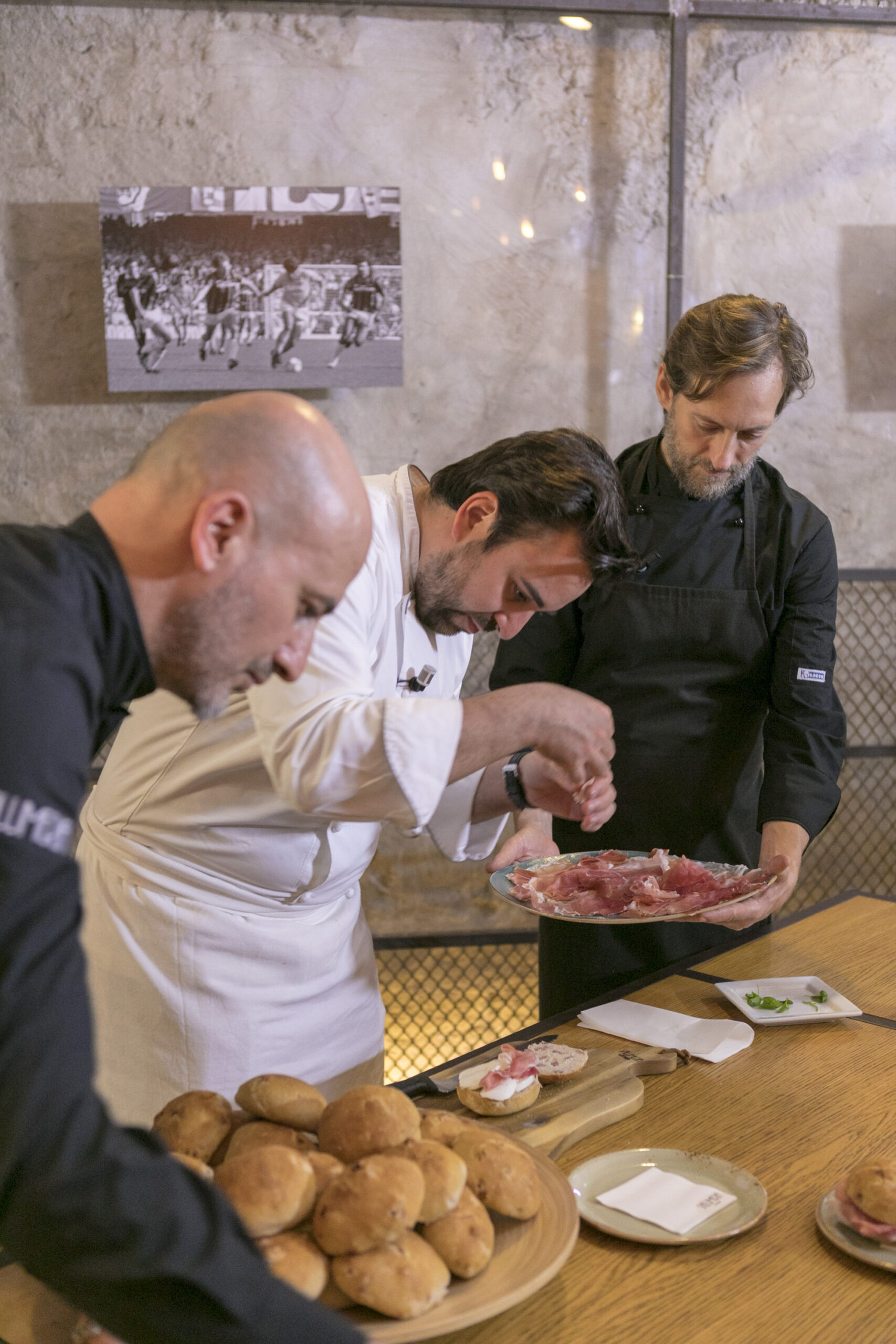 Il compito di selezionare e valorizzare ogni singola materia prima è stato affidato alle mani esperte di chef Massimiliano Mascia del Ristorante San Domenico che, oltre a preparare per l’occasione un piatto esclusivo per la “Serata Gourmet”, una coscia di maialino di Mora Romagnola croccante con tortino di broccoli e salame light Bellafesta, ha realizzato una ricetta a quattro mani con Gigi Crispino, chef della Salumeria Upnea, un panino gourmet con Prosciutto di Parma Zuarina 24 mesi accompagnato da mozzarella di bufala Aversana.