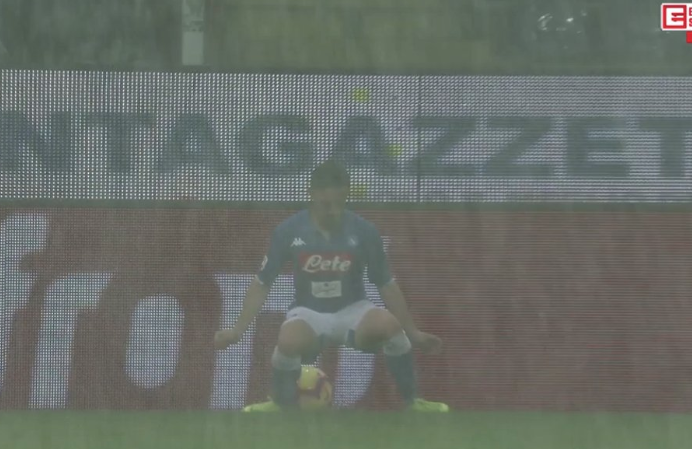La gara è ripresa alle 22.01, ma le condizioni del campo sono al limite e per una squadra tecnica come il Napoli è praticamente impossibile fare più di tre passaggi di fila.