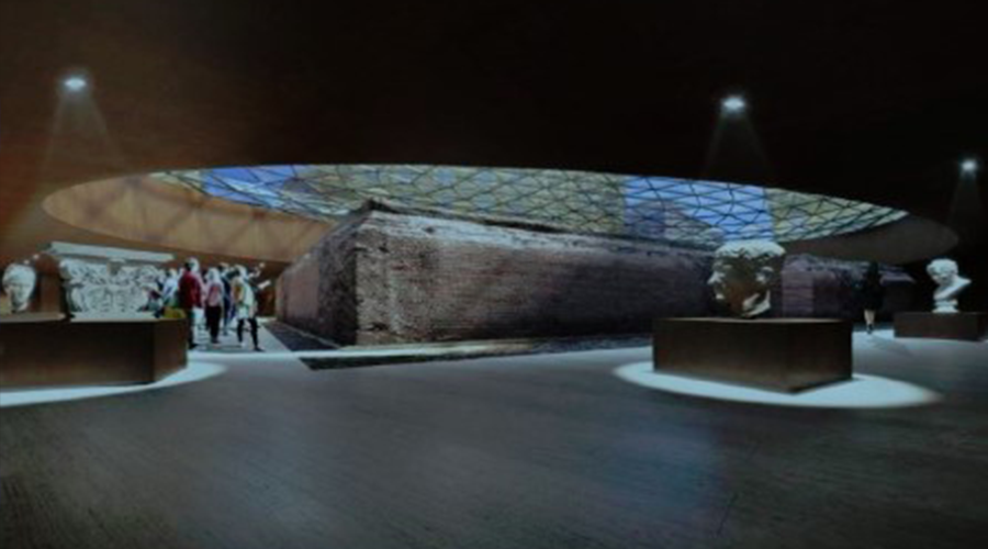 Il nuovo progetto è stato presentato. Il disegno della ripavimentazione evidenzierà la centralità della cupola in acciaio corten e vetro. Dalla cupola si potrà vedere l’area archeologica organizzata in un’area musealizzata attraverso due travi-parete in etro così i reperti archeologici ritrovati in questi anni saranno illuminati dalla luce naturale. I colori cambieranno a seconda delle ore della giornata combinando dal celeste chiaro all’arancio del tramonto ed oltre dal crepuscolo alla notte. Ma la suggestione più grande sarà vedere la cupola illuminata proprio al centro di piazza Nicola Amore.