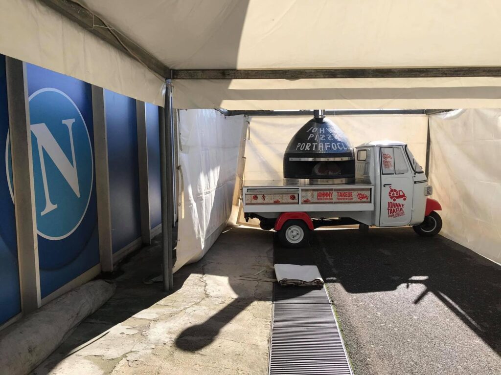 L'apecar di Johnny Take Uè ha sfornato circa 500 pizze per gli ospiti del presidente azzurro