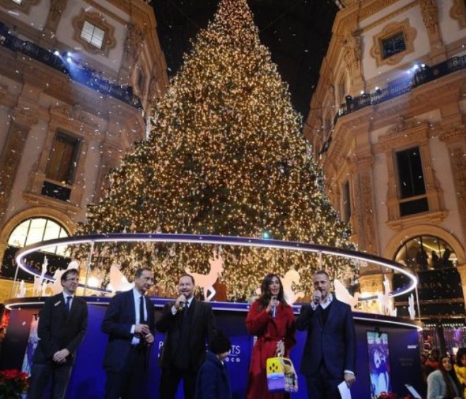 La showgirl, in compagnia del figlio, ha acceso l’albero di Natale collocato nell’ottagono della Galleria Vittorio Emanuele II di Milano. Insieme a lei anche il sindaco di Milano, Giuseppe Sala e l’assessore alla Cultura, Filippo Del Corno.