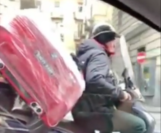 Caricarsi una mini-car sul motorino per consegnare o per portare a casa il regalo di Natale. E’ diventato virale il video che immortala un uomo a Napoli mentre si trova alla guida dello scooter dopo aver caricato sul bauletto e sulla sella l’ingombrante “pensierino”.