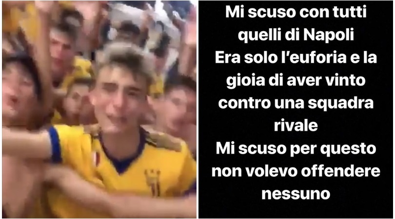 Il baby calciatore napoletano cancellò poco dopo il video e provò a rimediare: “Mi scuso con tutti quelli di Napoli. Era solo l’euforia e la gioia di aver vinto contro una squadra rivale. Mi scuso per questo, non volevo offendere nessuno”.