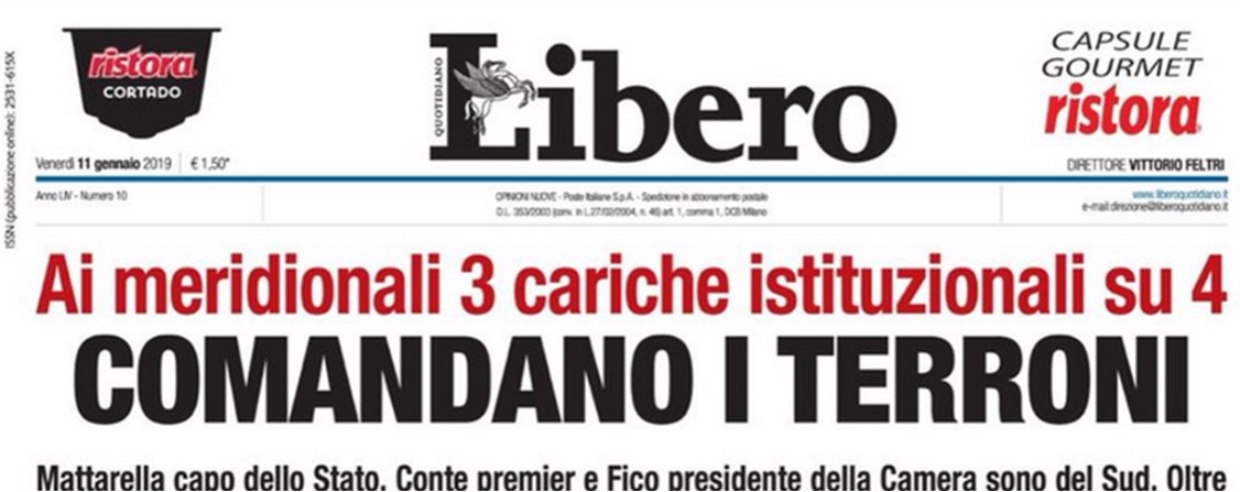 Secondo Libero comandano i terroni. Da un certo punto di vista la frase è anche motivata in un certo modo. Diverse cariche politiche e istituzionali, oltre a quelle assegnate dal nuovo esecutivo, sono ricoperte da meridionali.