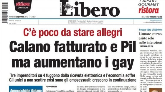 Stupisce, pertanto, che il quotidiano Libero, diretto da Vittorio Feltri, possa intitolare i propri articoli, peraltro pubblicati in prima pagina, utilizzando definizioni offensive.