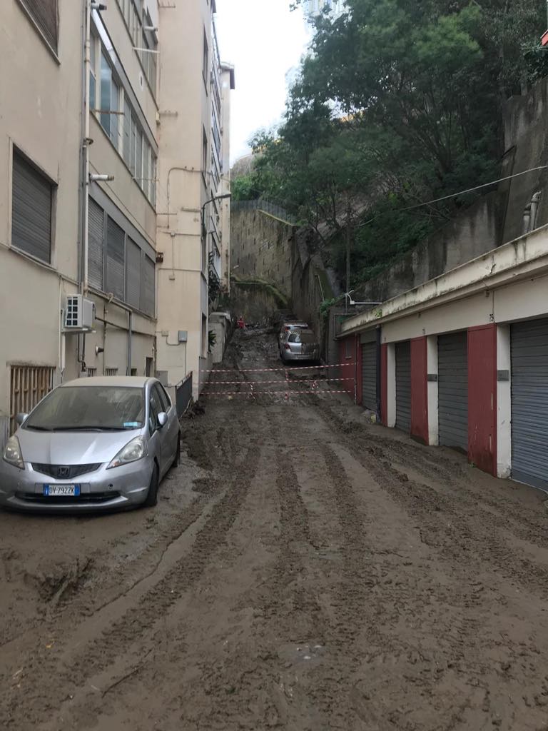 Non si registrano persone rimaste ferite. Danni alle auto e ai motorini parcheggiati, travolte dalla caduta di fango e detriti. L’area interessata dalla frana è stata delimitata e messa in sicurezza.