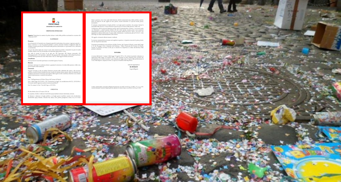 Il Sindaco di Napoli Luigi de Magistris ha firmato l’ordinanza con la quale si fa divieto, durante tutto il periodo di carnevale e fino al 10 marzo di: