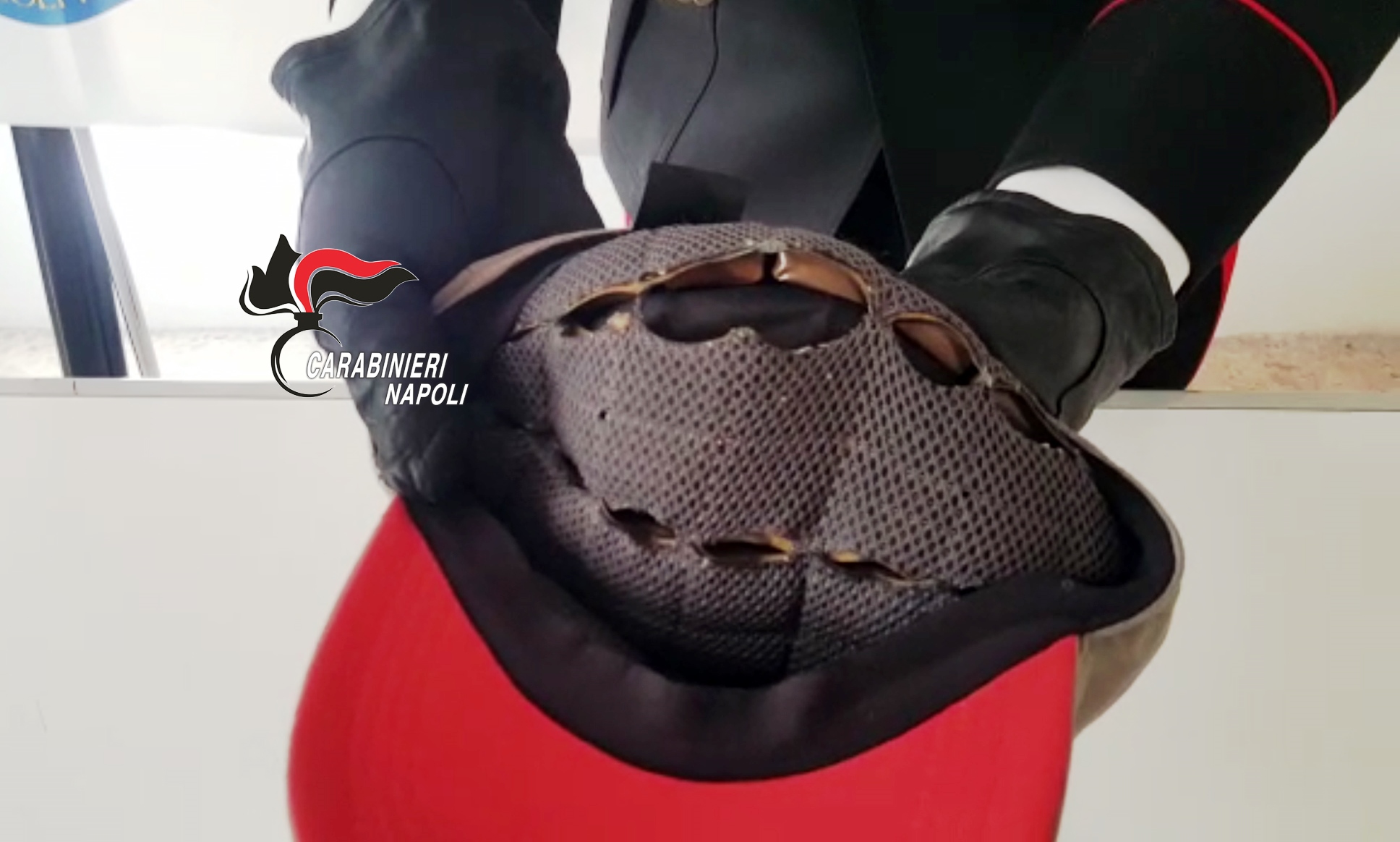 In una mansarda di libero accesso e di uso comune, nascosto tra ciarpame, mobili vecchi e polvere, hanno trovato un berretto antischegge chiuso in una busta e 2 giubbetti antiproiettile tenuti in un’altra busta. Il particolare berretto in origine era un normale cappellino da baseball ma è stato modificato imbottendolo con sacchettini di sabbia per renderlo resistente a schegge causate da eventuali colpi di pistola.